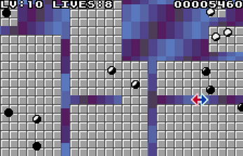 This is a Jezzball clone where the aim of the game is to trap the quarks by using the divider - each stage is won when at least 75% of the play area is made solid.